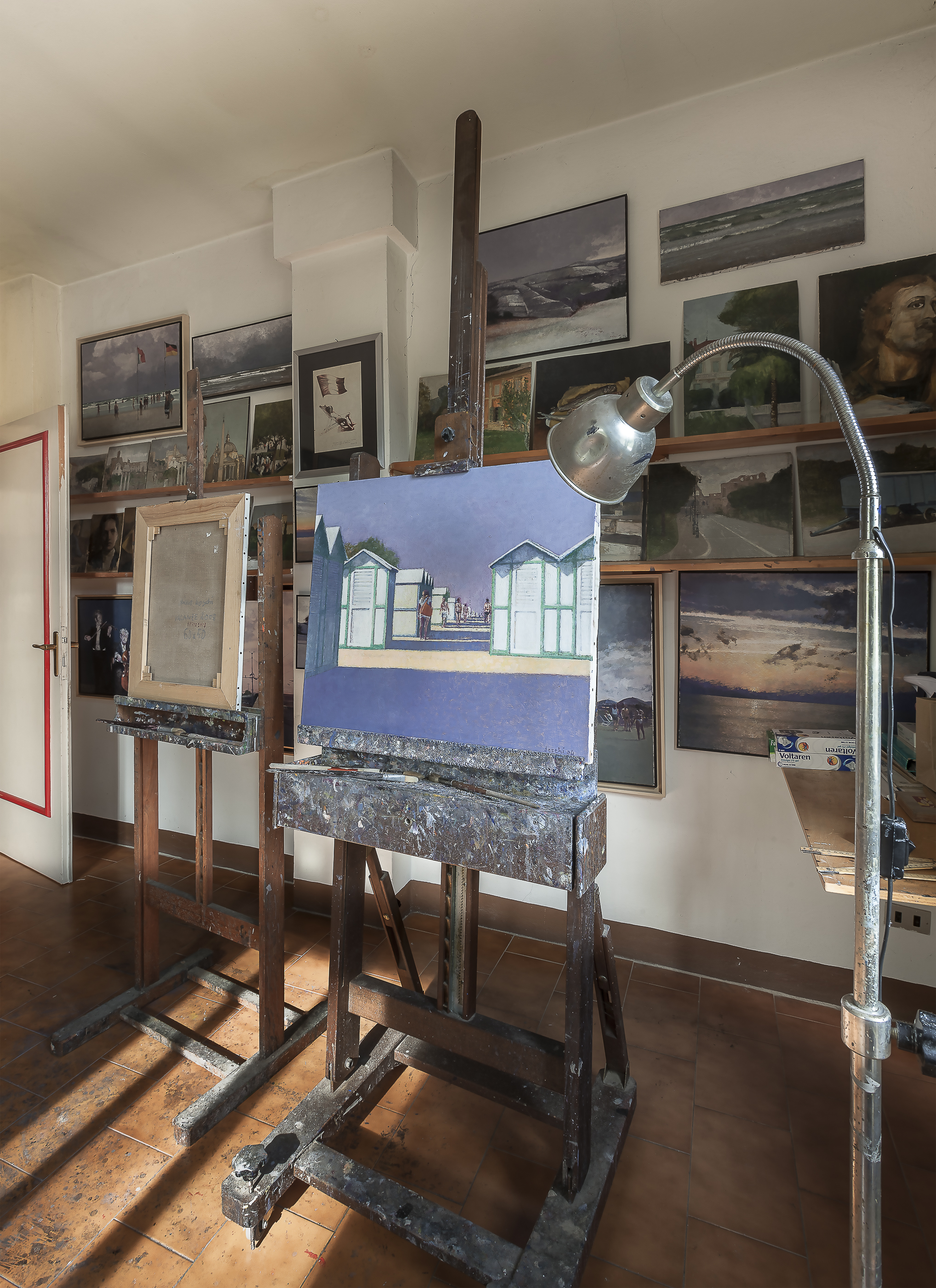 ​​The exhibition consists of a series of unpublished photographs of the studio in Gaibola as the artist left it – belonging to the photographic archive of CUBO – that depict the artist’s places and things, alternating with some paintings dedicated to the beaches of the Riviera Romagnola, periodic summer refuge of the family and a place with which the artist had a controversial relationship throughout his life.