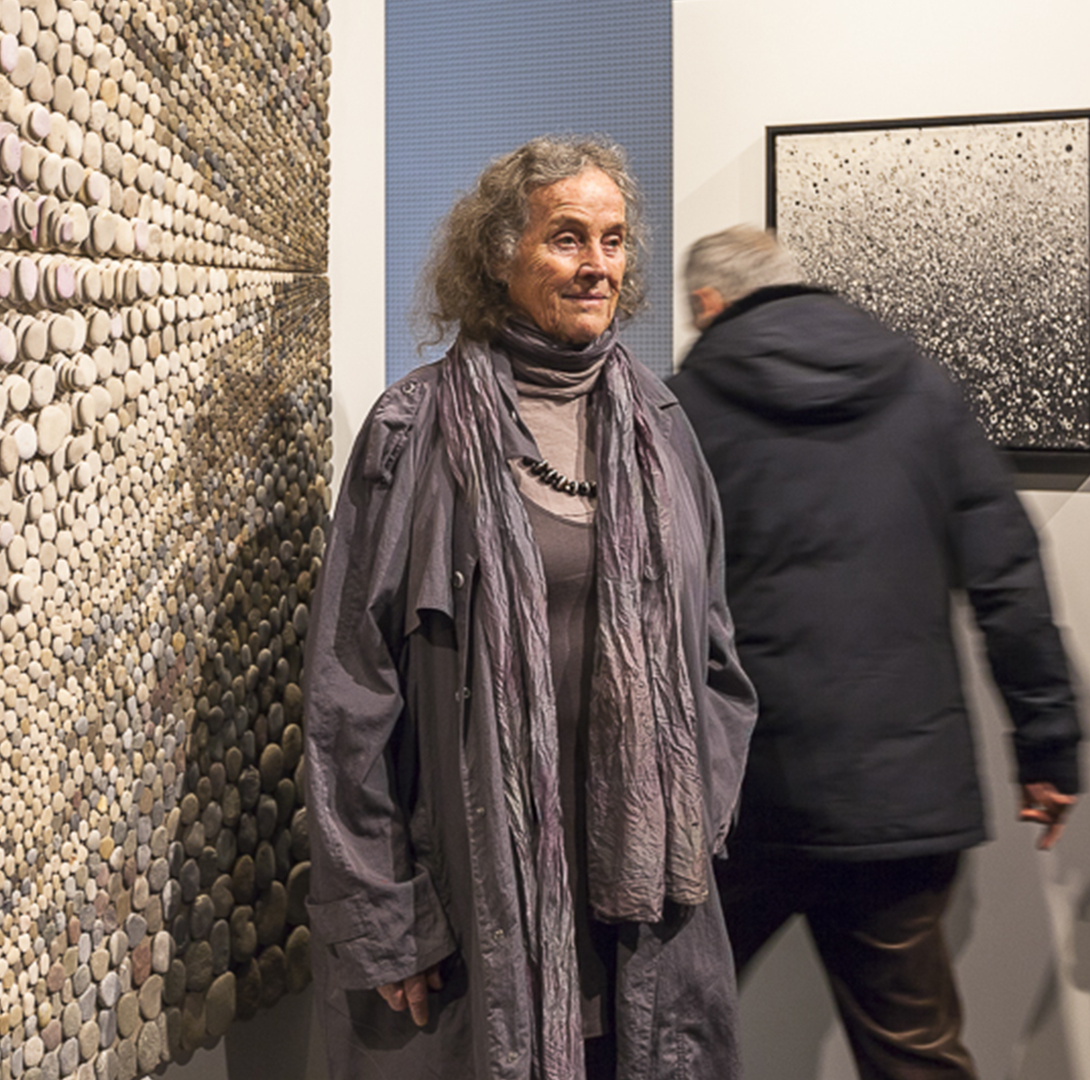 Exterior view of the exhibition. Mary Bauermeister and Steinbild, mixed media on wood, 1980, 200×200 cm