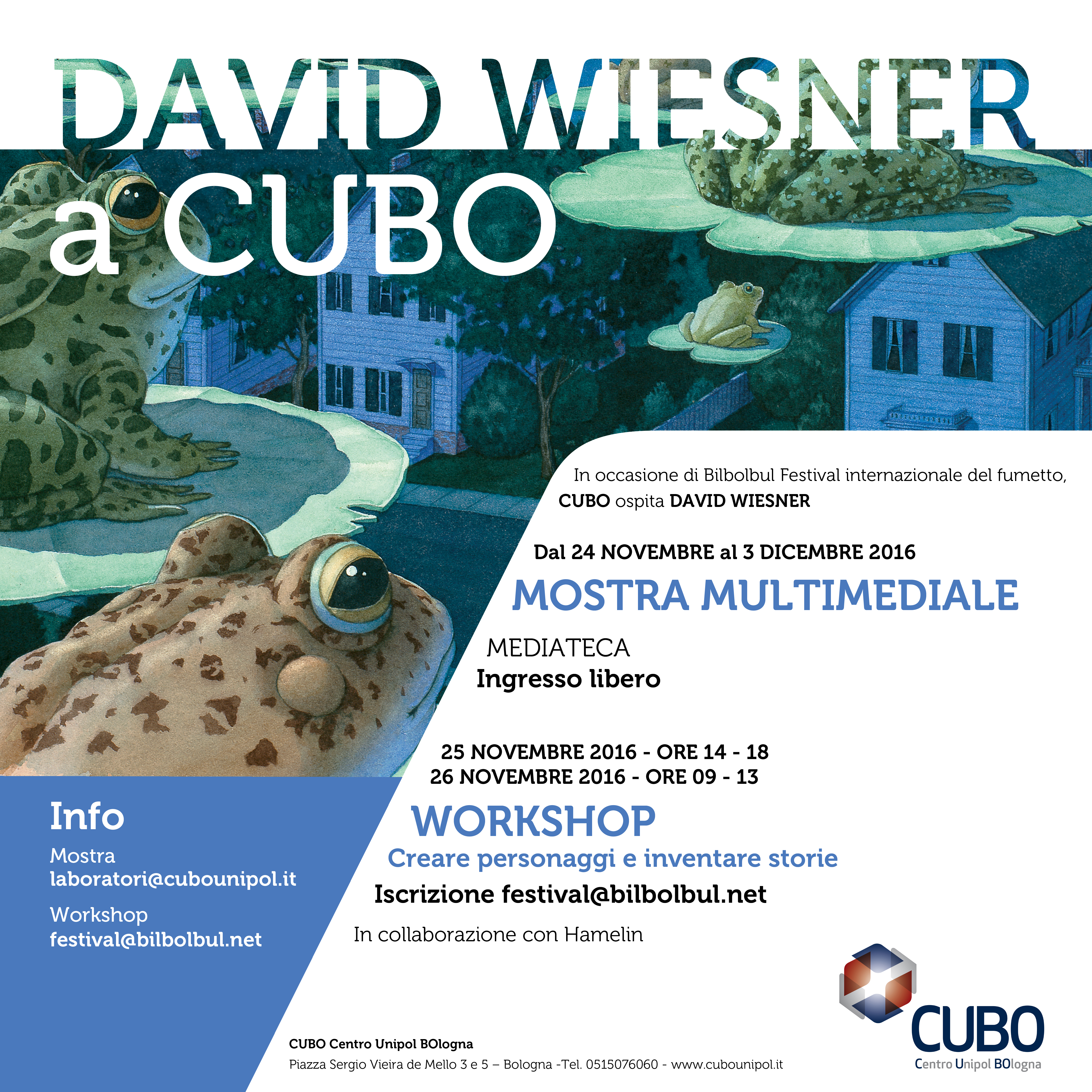 In occasione di BIBOLBUL il Festival Internazionale del Fumetto, CUBO ospita David Wiesner, illustratore e scrittore americano di libri per bambini. Il suo lavoro si distingue per la sua profonda capacità di studio e resa dei personaggi e dei loro caratteri.