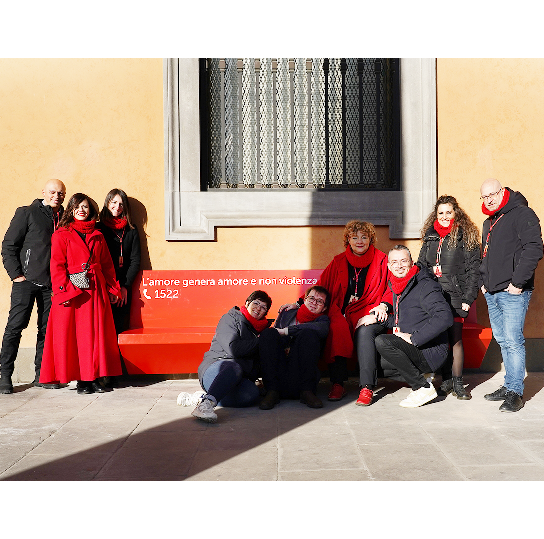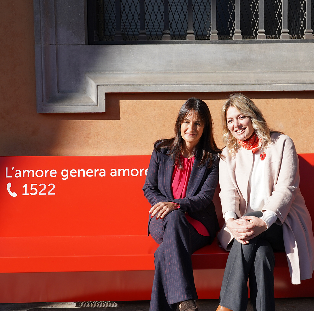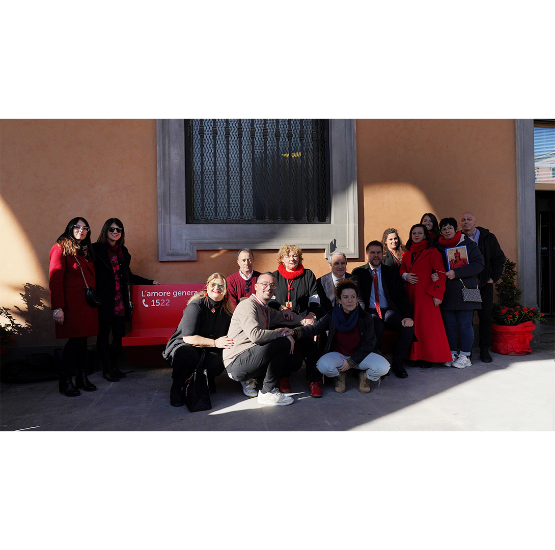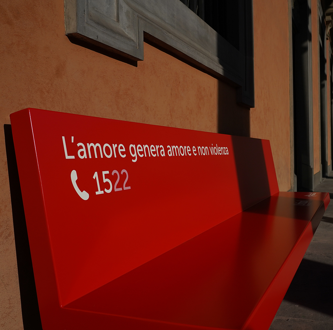 Realizzata in collaborazione con Fondazione Libellula, la panchina rossa riporta la frase “L’amore genera amore e non violenza” e il numero antiviolenza 1522 che accoglie le richieste di aiuto e sostegno delle vittime di abusi e stalking.