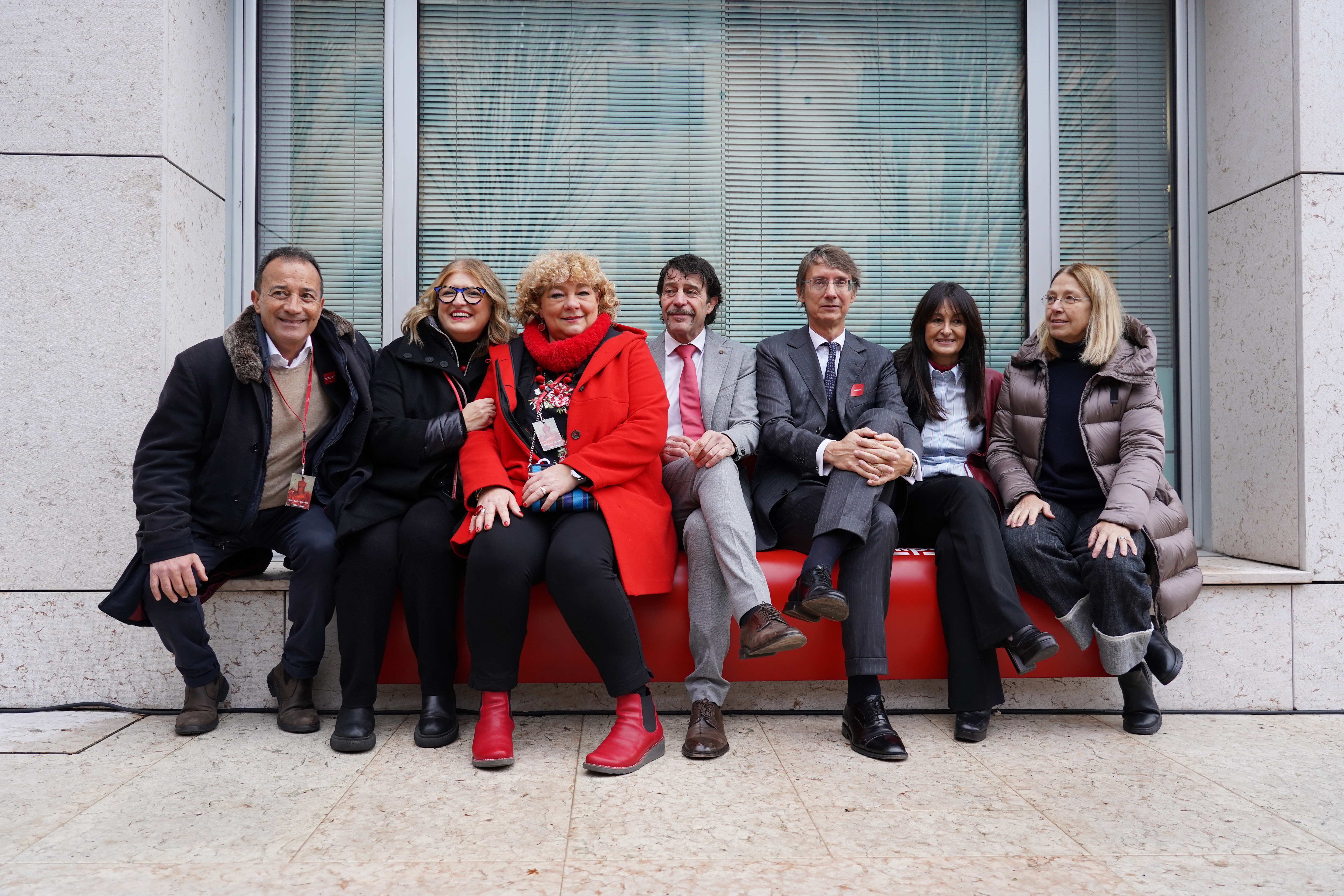 Questa panchina segue la prima inaugurata nel 2019 nei giardini di Porta Europa a Bologna, la seconda installata nel 2020 nella piazza della Torre Unipol a Bologna, la terza collocata nel 2021 presso THE DAP – Dei Missaglia Art Park a Milano, la quarta nel 2022 a Torino in Galleria San Federico, la quinta nel 2023 a Firenze in Piazza della Libertà e la sesta inaugurata lo scorso anno a Milano nei pressi di Unipol Tower, in via Fratelli Castiglioni 2. Tutte le panchine rosse installate da Unipol nel corso degli anni sono state realizzate in collaborazione con la Commissione Pari Opportunità del comparto assicurativo della compagnia e con la Fondazione Libellula.