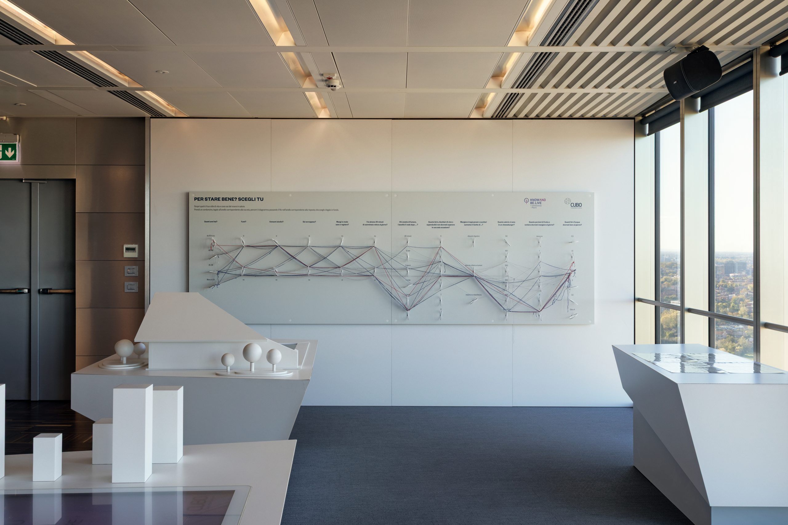 Ogni partecipante costruisce fisicamente un grafico che rappresenta il suo stile di vita: lungo un pannello a parete risponde ad una serie di domande sulle sue abitudini in tema di alimentazione e attività fisica. Le risposte sono affidate ad un sistema di fili e di anelli che fissano ogni risposta ad un punto del pannello e restituiscono, all’ultima risposta data, un diagramma che descrive la qualità dello stile di vita del suo autore.